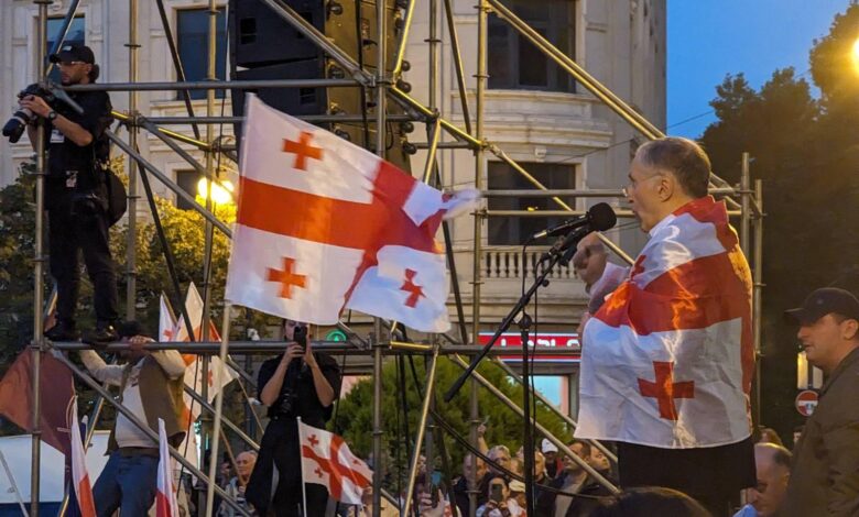 აქციის მონაწილეები ათონელის საპრეზიდენტო სასახლისკენ დაიძრნენ